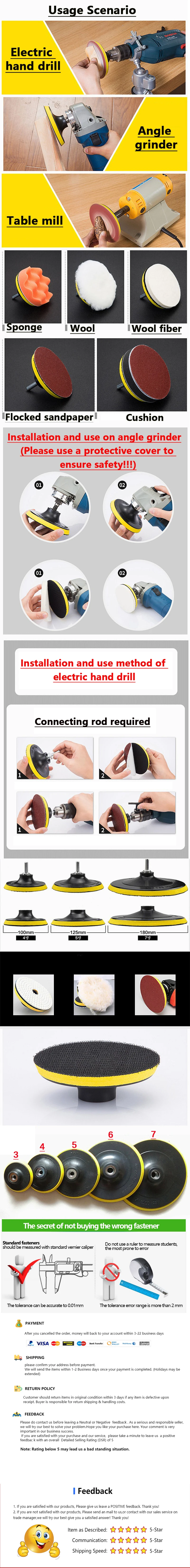 3.For use with a grip (hook and loop) grinding or polishing pads which enable the supporting plate. To paste the sponge plate, wool ball, flocking sandpaper and so on.